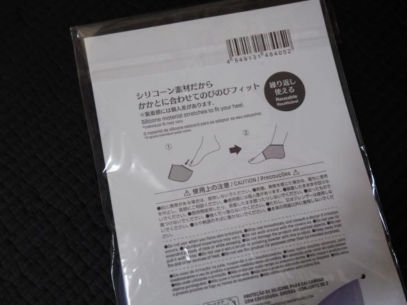 それならと、保湿クリームを塗ったかかとを保護する「シリコーンかかとパック/厚手・2枚組」(税抜100円)を使ってみることに。