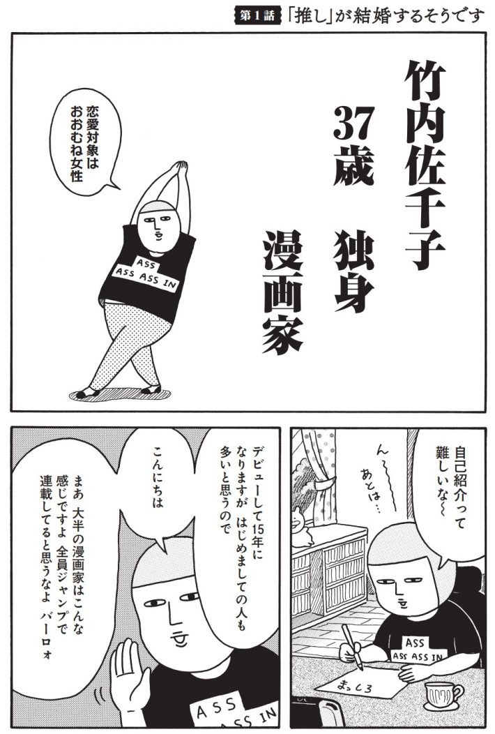 NHKでアニメ化された『赤ちゃん本部長』や、おっかけエッセイ漫画『ブラブラ珍所~イケメンに会いたくて~』シリーズで人気の漫画家・竹内佐千子さんが、9月3日に新刊『沼の中で不惑を迎えます。 輝くな! アラフォーおっかけレズビアン!』を上梓しました。