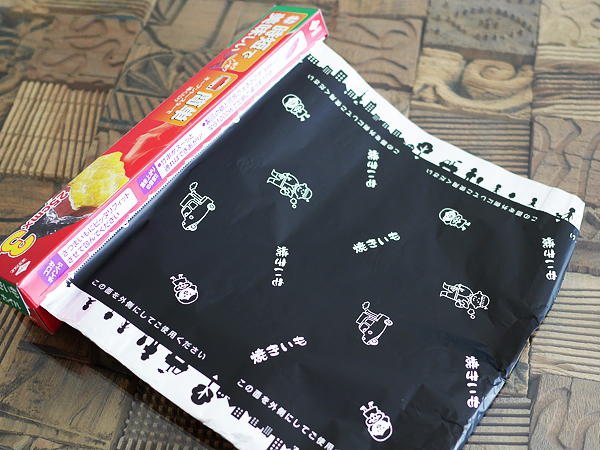 焼き芋を作るために、熱が外部に逃げないように(乾燥しないように)芋を包むのが、「アルミホイル」。しかしながら、長時間の加熱はパサパサの原因になってしまいます。そのホイルを“黒ホイル”にすることで、適度な時間で熱吸収率を高めることができます。この黒ホイル、スーパーやネットショッピングなどで200円前後で購入できます。