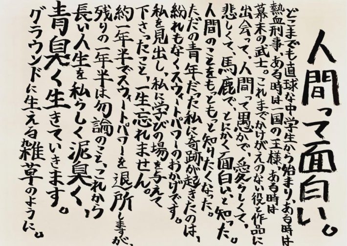 今回インスタに掲載したコメントの字がなかなか個性的。まるで、詩人で書家の相田みつをさんのような独特な筆遣いで、一度見たら忘れられない筆跡をしています。