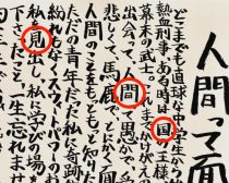 岡田さんの字は、線が太くて力強く、パワーを感じます。また「間」や「国」、「見」などの四角い字の四隅をきっちりくっつける傾向にあるので、真面目で筋を通したいタイプ。