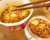 スーパーでも手軽に購入することができるキムチブランド「宗家キムチ」。以前友人になかなかおいしいキムチに巡り会えないと話したところ「宗家キムチがおいしい」と教えてもらい、それを機に見事にハマって今では常にストックしてあります。「宗家キムチラーメン」はその宗家キムチのカップラーメン。かやくとして、フリーズドライではないシャキシャキのキムチがついてくるんです。