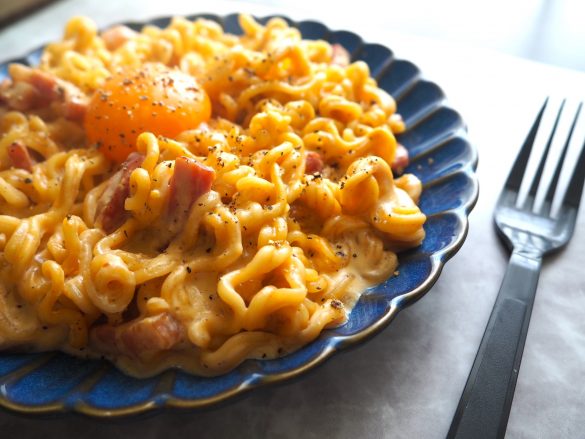 「辛ラーメン」で作るカルボナーラが美味しい! 麺のもちもち感がUP