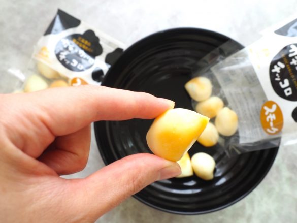 コロンと丸く、プクプクと可愛らしい一口大のこのチーズは、商品名にもなっている“カチョカバロ”というイタリア発祥のチーズです。原料は牛乳。柔らかそうな見た目に反して、水分を抜く過程でギュッと硬く仕上げられているハードタイプのチーズに分類されるのだそう。