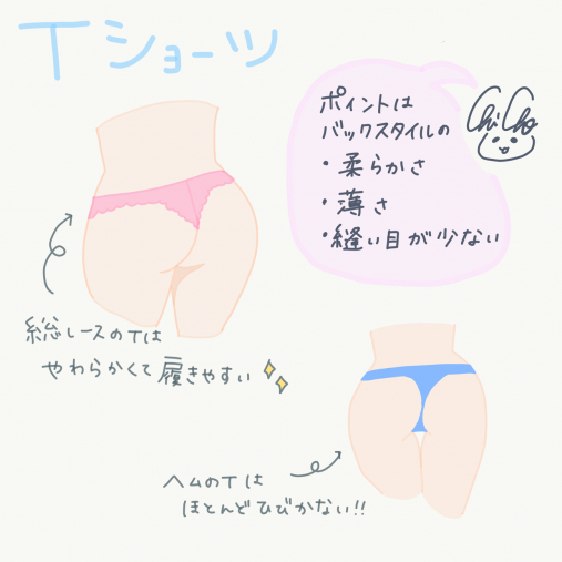 初心者さんにオススメ!履きやすいTショーツ ポイントは柔らかさ、薄さ、縫い目が少ない「Tショーツを履いている=エロい」というイメージは今でも強く、履いているだけで「Tショーツを履いているなんて!!」と驚かれるパターンも少なくありません。 しかし、Tショーツは以前に「女子SPA!」でもご紹介した通り機能的なアイテムです。 もちろんファッションとして楽しむ人もいますが、普段使いをしている人は、機能的に使いやすいから着用している場合が多いです。 最近では可愛らしいものやお尻を覆(おお)う面積が広めなTショーツなど、初心者さんでも使いやすく可愛らしいものも増えているので挑戦される人も増えている印象です。