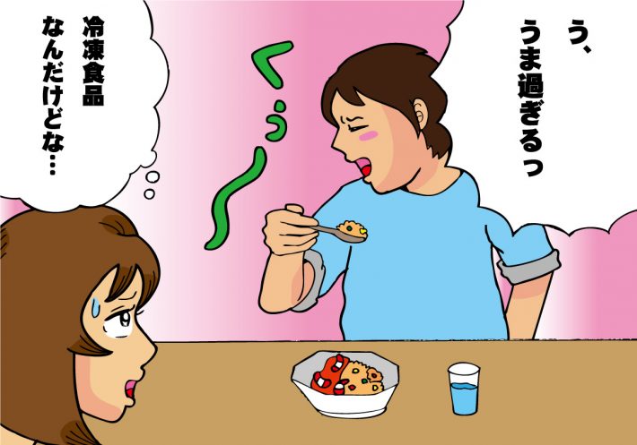 冷凍食品を絶賛する夫