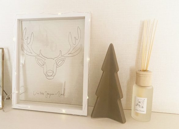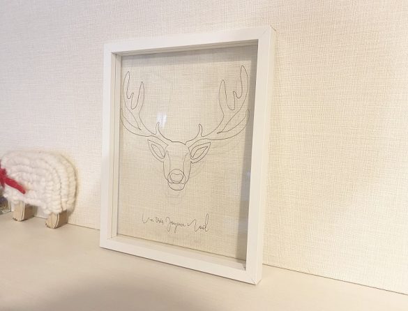 線画のトナカイが描かれたガラスパネルは、立てかけて飾るだけでなく壁にもかけられる仕様。トレンドの韓国インテリアを思わせるような可愛さで、クリスマスの時期だけ飾っておくにはもったいないと思ってしまうほど。約21.5×26.5cmと存在感はあるもののベースがクリアガラスなので見た目的に重くないところも気に入っています。