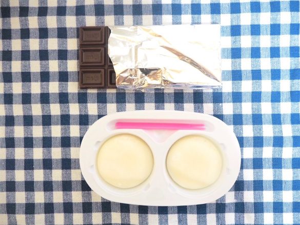 この状態で、チョコレートをフォンデュ(溶かす)していくので、マグカップは大きすぎず、小さすぎない「雪見だいふく」の容器が安定するサイズのものを使うといいでしょう。