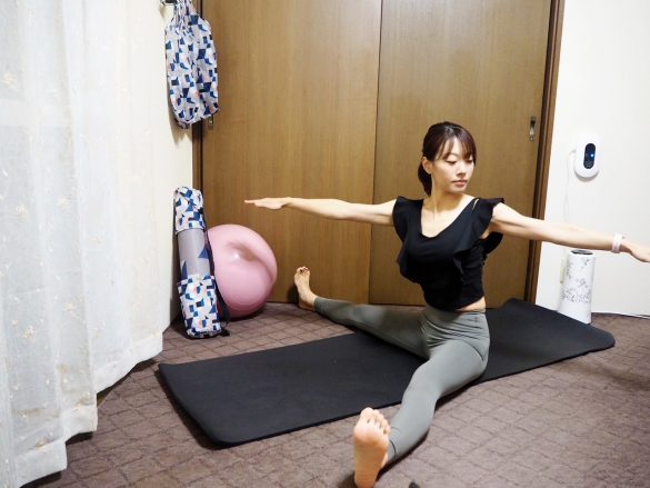(3)息を吐きながら左ひざを開く~息を吸いながら閉じる×10回