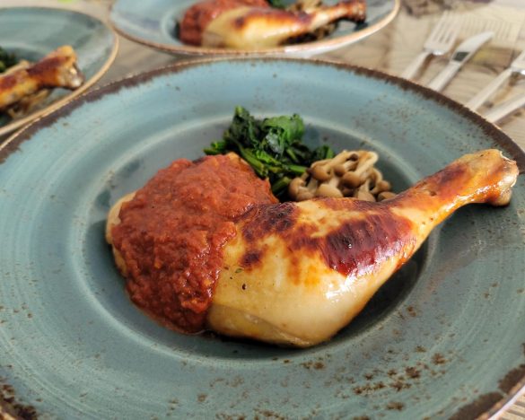 そしてもう一つは、骨付き肉。予め下味をつけておいた肉を両面じっくり焼くだけで、レストランで出てきそうなパリッとジューシーなグリルチキンを作ることが可能です。
