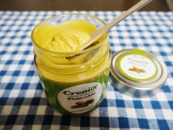 公式HPによると、プレーンスコーンやトーストといった甘みが少なくシンプルな味わいのパン、塩味のあるパンとの組み合わせ。それと、バニラアイスの上にかけることで、パリッと固まった「ピスタチオスプレッド」の食感を楽しめるなど、バイヤーオススメの食べ方が紹介されているのです…が!