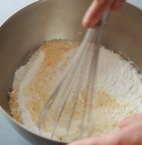 3. 2に1を加え、泡立て器で生地がなめらかになるまでよく混ぜる。