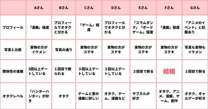 由利さんがオタクと認めるレベルのオタクは?(ご本人のお話をもとに、筆者が表にまとめてみました)