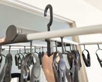 このハンガーはメインフックの他に2つの補助フックが付いていて、3点でしっかりと固定できるため傾きません。補助フックは畳んでおくことも可能なので、必要に応じて使う・使わないを選ぶことができます。