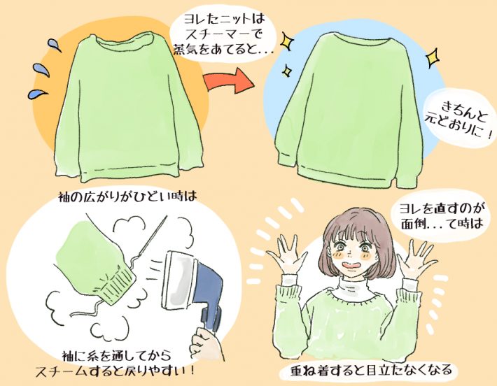 とはいえ、鏡に映る自分があまりにもズボラすぎる姿なのは避けたいところ。そこで今回はよくある毛玉・シミ・ヨレの3パターンの服がそれとな~くきちんとして見えるように、それぞれの改善ポイントをお伝えします。