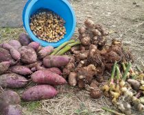 収穫したサツマイモと山芋。たくさん採れすぎてむしろ消費に困り、お裾分けなどもしているという
