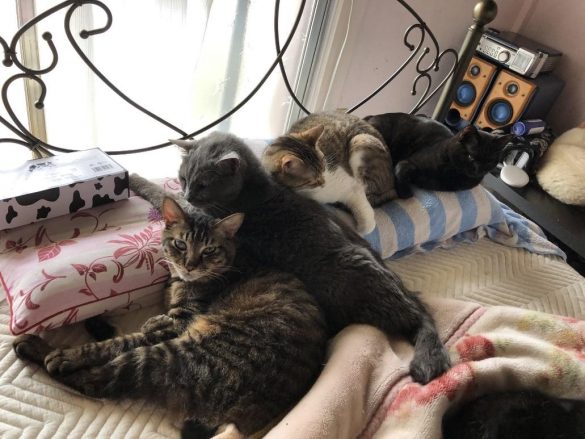 「保護後、冷え始めていた体を抱いて一緒に眠ったことは今でもよく覚えています。ウォッカは先住猫たちからも愛され、抱っこしなくても大丈夫な時は同居猫たちにくっついていました」