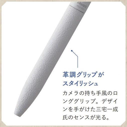 機能性だけでなく、ボールペン全体のフォルムの美しさにも貢献。