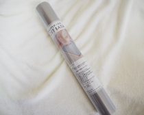 筒状になっていて、まるで小さめのヨガマットのような見た目をしています。カラーもシンプルなグレー(ウエブサイトには、グレーと書かれています)というか、グレージュ?に近い色味なので、浴室やインテリアになじみやすそう。