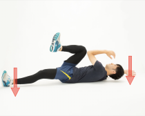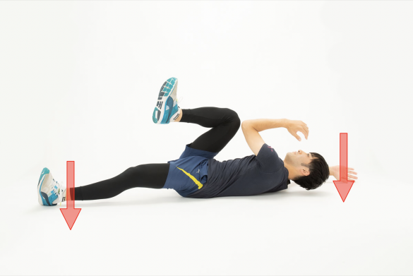 2. 右腕と左脚を床に向かって全力で押しつけます
