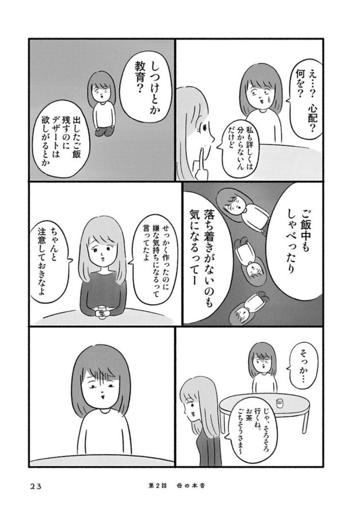 2022年3月3日に出版された『実家に帰りたくありません』(白泉社)は、実家との距離感に悩むアラサーママの姿を等身大に描いたコミックエッセイです。  本記事では、第2話を紹介。著者のイタコさんに当時の葛藤や、子ども時代から続く家族との関係性について聞きました。 【関連記事】⇒週1で実家に呼び出される…過干渉な家族の“いびつな絆”を描いた作者を取材<漫画> 実家0201