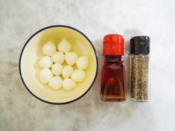 モッツァレラチーズを並べてラー油をたら~り、レンチン後は塩こしょうをパパッと振るだけ。所要時間1分で、美味しくて楽しいおつまみが出来ちゃいました。お好みで、ねぎやごまを散らしたりしてもよさそうです。