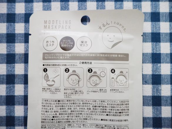 それでは、「モデリングマスクパック」のパッケージ裏面に記載された使用方法にそって、お試ししてみたいと思います。