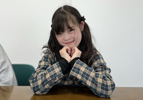 当初、取材時に由美さんのみいらっしゃるのかと思っていたら、菜桜さんも由美さんと一緒に現れました。オシャレなチェック柄のセットアップ姿にくるんと巻いたツインテールに黒いリボンという出で立ちでとても可愛らしい格好をしています。菜桜さんが初めてモデルに挑戦したのは9歳のとき。最近では千代田区の障がい者のための広報誌の表紙のモデルも務めています。
