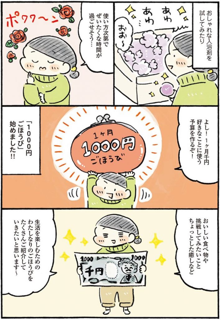 乳製品に小麦粉、電気代。世の中に吹き荒れる値上げの嵐。時は春、鬱々としていられません。『わたしの1ヶ月1000円ごほうび』(KADOKAWA)は、1000円で楽しめる極上の体験リスト。漫画家のおづまりこさんが「結構何でもできる」1000円の使い道をイラストエッセイで綴っているのです。