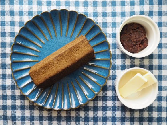 そして、ふわふわと柔らかすぎない適度な湿度と重量感のある生地は、包丁を入れても断面が崩れずキレイ。そこへ、粒あんを塗って、バターを挟むだけですから、難しい作業はありません。使用するそれぞれの材料は、単品でも美味しいのだから、味の心配もゼロ。むしろ、期待しかない。