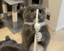 エマちゃんは、もともと木材を噛むのが大好き。そのため、飼い主さんたちは木製の家具を減らしてきたほどです。 マンチカンのエマちゃん そんな中で、エマちゃんが興味を持ったのが割り箸だったのです。 「妻がたまたま買ってきた弁当についていた割りばしが目についたようです。箸にじゃれついたので左右に振って遊んだところ、真剣白刃取りを決められました(笑)」  好奇心旺盛なエマちゃんは、タンスや引き出しなどのチェックも日課にしており、開けると必ず中へイン。