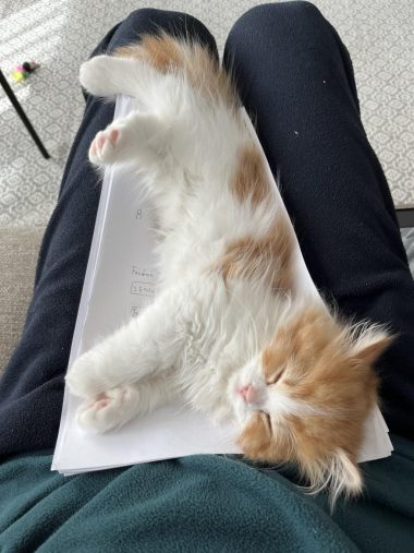「いつも、私たちがすることに興味津々。食事の時はぴょんと膝に乗ってきますし、洗面所にも登ります。キッチンは登れないけれど掴めると気づいたようです」