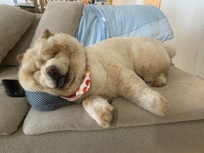 飼い主さんは、茨城県にあるテーマパーク「つくばわんわんランド」でチャウチャウに一目惚れ。おうちに迎えたいと思い、翌月、全国各地のブリーダーさんに問い合わせをする中で、くり蔵くんと出会いました。