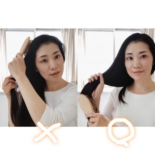ブラッシングについては、いきなり頭頂部付近からブラシを入れ、上から下へ一気に通さないことです。ひっかかったり、ブチっと髪が切れたりしてしまうのはもちろん、摩擦も起こります。実際に行われた検証で、ブラッシングは、一回のストロークが長くなればなるほど髪に与えるダメージが大きくなることが分かっています。