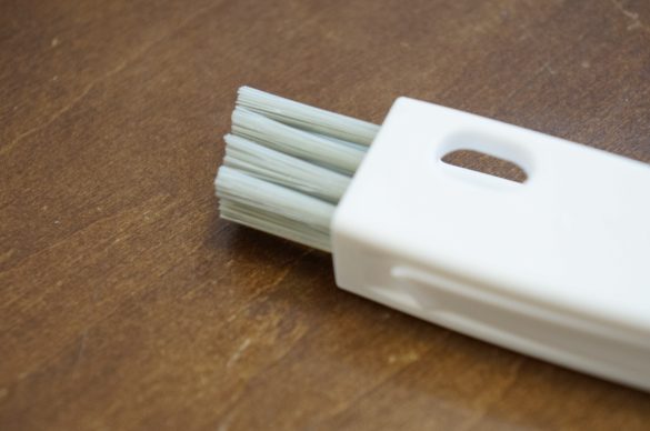 ちなみにすみブラシはふたの溝にも使えそうです。こうして溝に沿わせてブラシを滑らせるようにして洗っても汚れはしっかり落ちました。