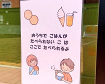 また、こどもの目線の高さに貼られたポスターには、かわいらしいイラスト付きで「おうちでごはんがたべられないこはここでたべられるよ(原文ママ)」とあります。