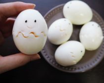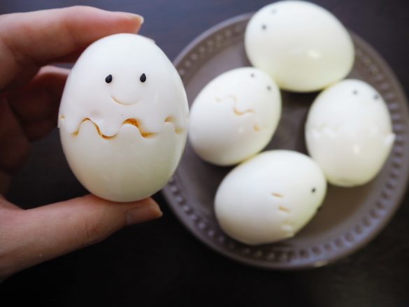 なんと、「花卵コロン」の上にゆで卵を置いて、コロコロと転がすだけでいいのだそう。包丁を使うことなく、難しいテクニックも不要で、いつものツルンとしたゆで卵をお花型や顔付き卵に変身させることができるだなんて…、簡単すぎっ。