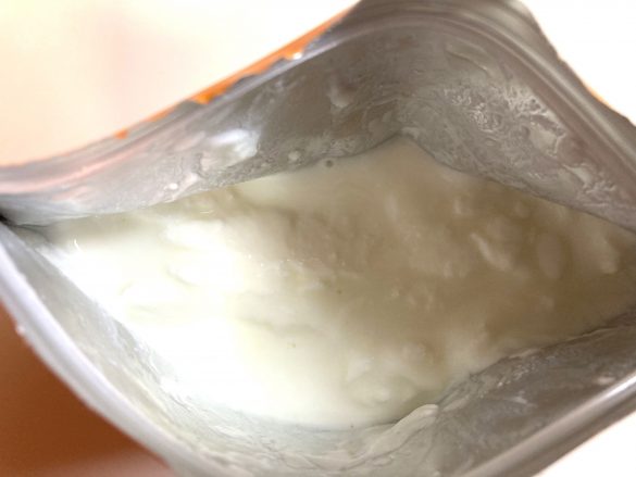 ジップ付きのアルミパウチの容器に入っていて、見るからに他のヨーグルトとは一線を画しています。