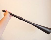 最後までリングを下げることでほうきの穂が長い状態で固定でき、玄関回りなど広い範囲の掃除に適しています。穂の素材はポリエチレンテレフタレートになっているのが通常のほうきとの大きな違いです。