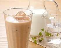 4.スプーン1杯の砂糖を溶かし、氷と約60mlの牛乳を加えたら出来上がり。