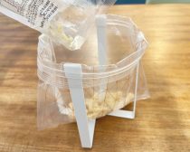 ポリ袋をかける以外にも、ジッパーバッグをかければ食品を移し替える時にとても便利!