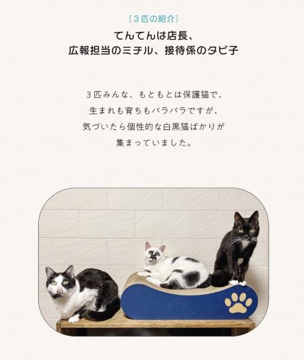 てんてん(店長)は2016年3月生まれ(推定)。唯一の男の子で体重は5kg、身体も大きく力も強いのに一番繊細で怖がりです。実はとても甘えん坊なのだとか。