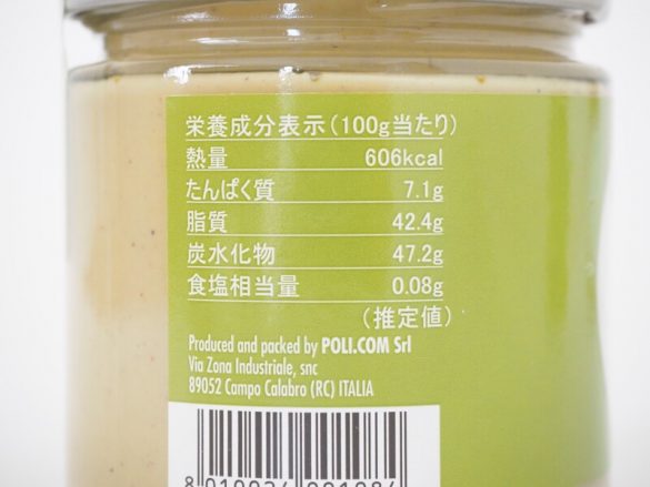 ピスタチオスプレッドこちらが成城石井で購入できる「ポリコムピスタチオスプレッド」で、私が購入したときはセール価格の646円(税込)でした(通常価格は1070円(税込)※編集部調べ)。はちみつやジャムが並ぶコーナーで発見! ピスタチオスプレッド原材料には砂糖、植物油脂、ピスタチオ、脱脂粉乳、ホエイパウダー、乳化剤、香料を使用。内容量は240gで、原産国はイタリアです。 ピスタチオスプレッドカロリーは100gあたり606kcalです。 ピスタチオスプレッド今回購入したものの賞味期限は、3か月ないくらいですね。 ピスタチオスプレッドふたをあけると、ピーナッツバターに近い香りがふわりと漂います。油分が分離していますが、混ぜれば問題なさそう。 ピスタチオスプレッド常温の状態でもなかなか緩いので、何かに塗ったり、何かと混ぜたりしても、しっかり伸びてくれそうです。