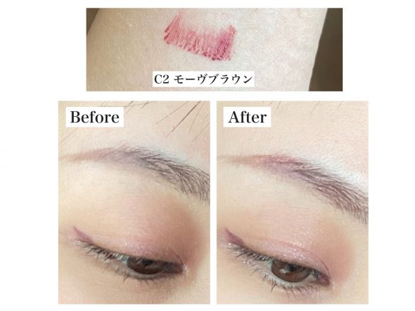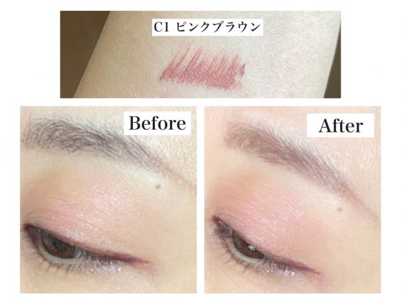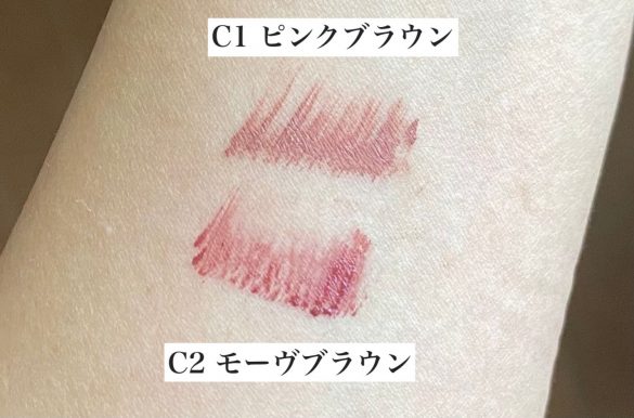 色展開は、「C1 ピンクブラウン」と「C2 モーヴブラウン」の2色。一般的に眉マスカラというと、ブラウンの主張が強い色展開が多い中、眉の印象をガラリと変える可能性を秘めたニュアンスカラーです。