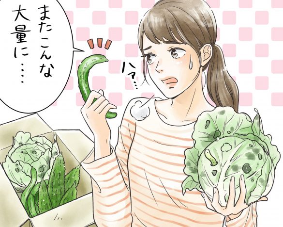 「野菜が送られてくると、お礼の電話をするのですが、食べたかどうか確認してくるんです。うちはまだ子どもも小さいし、そんなに野菜も食べない。夫は自分の家の野菜なのに、食べるのが嫌なようで、“残業してくる”と言って、帰りに呑んで食べて帰ってくる。結局、家にいる私が大量の野菜を食べるために料理するしかないんですよね」