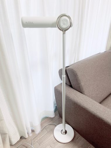 「スタンド」と言っても、手持ちのドライヤーを机の上で立てかけたりホールドしたりできるただのスタンドではなく、高さのあるバーにドライヤーがついており、床置きして使うタイプのものです。
