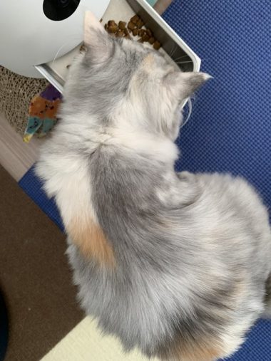 シャーロットちゃんは顔だけでなく、後頭部の模様も半分で分かれており、背中の模様も個性的。
