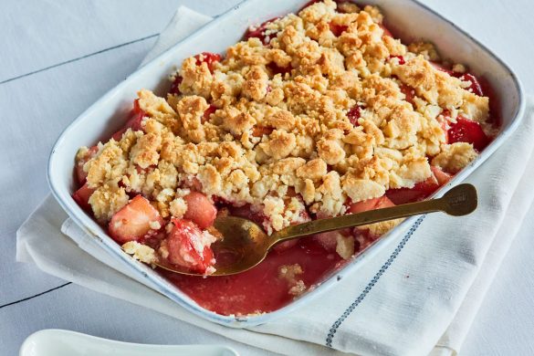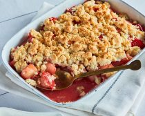 3.ボウルにクランブルの材料をすべて入れ、ヘラでよく混ぜて2の上にかける。180℃に予熱したオーブンで15~20分ほど焼く。