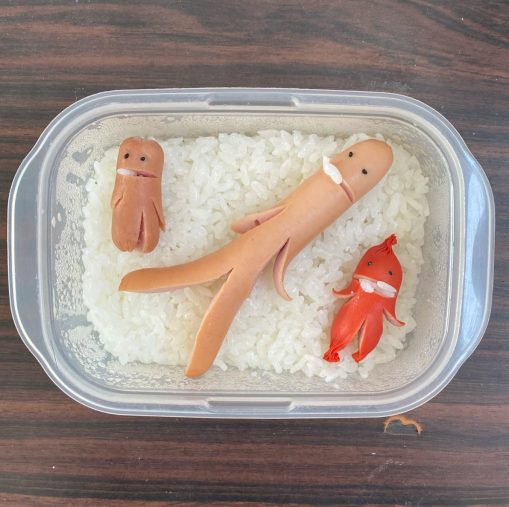 milktea「もともとお弁当は毎日作っていました。今年の4月頃に、タッパーに入れる弁当が世の中にはたくさんあることを知って、自分でもタッパーにつめてSNSに投稿するようになりました。作っていく中でお弁当にオリジナリティーが欲しいと思い、6月頃からウインナー星人を作り始めました」