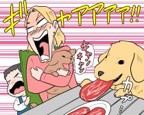 飼い主がゴールデンレトリバーを捕まえましたが、ミクさん家族が持ってきていた黒毛和牛ステーキ3枚は、すべてゴールデンレトリバーのお腹の中へと消えてしまったのです。